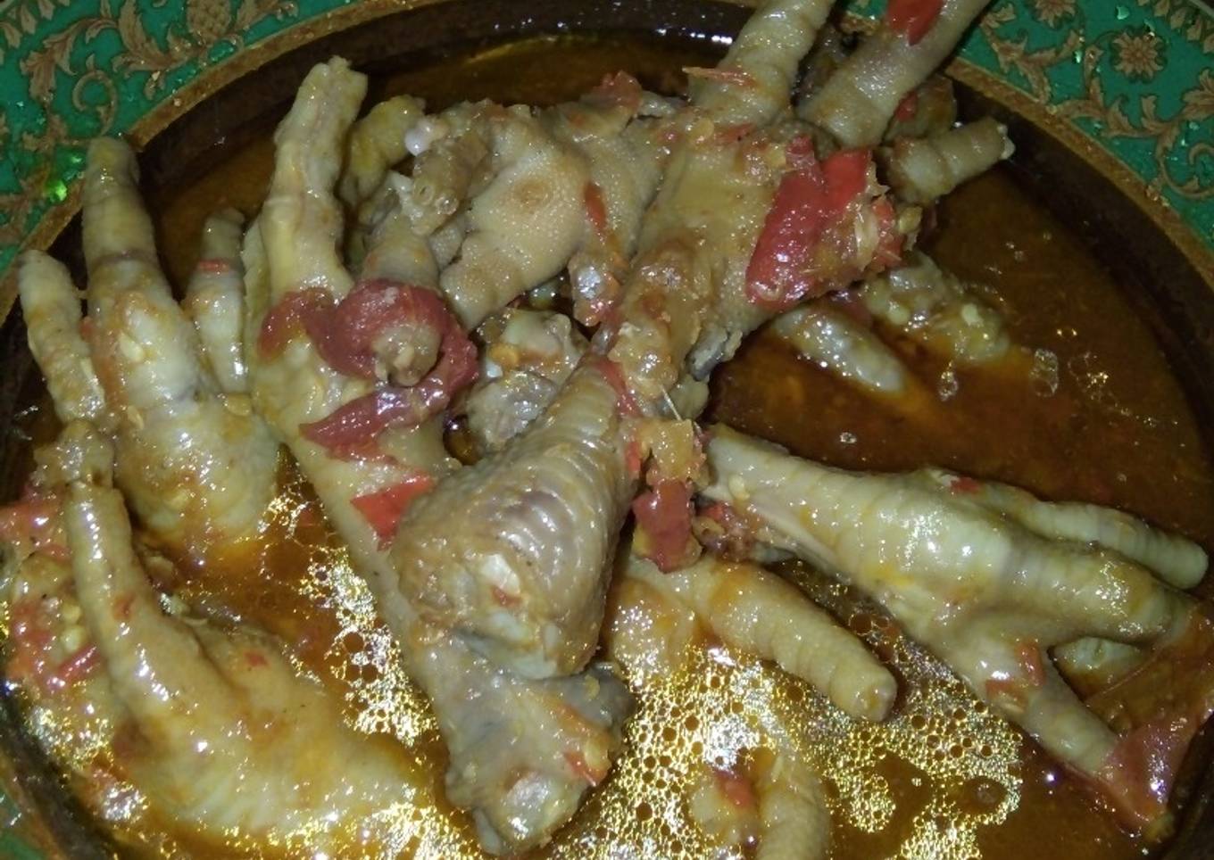 - Masukkan air kurang lebih 600 ml, tambahkan kecap dan penyedap, koreksi rasa. Setelah mendidih masukkan ceker yang sudah direbus tadi (buang airnya dan dicuci lagi ya).