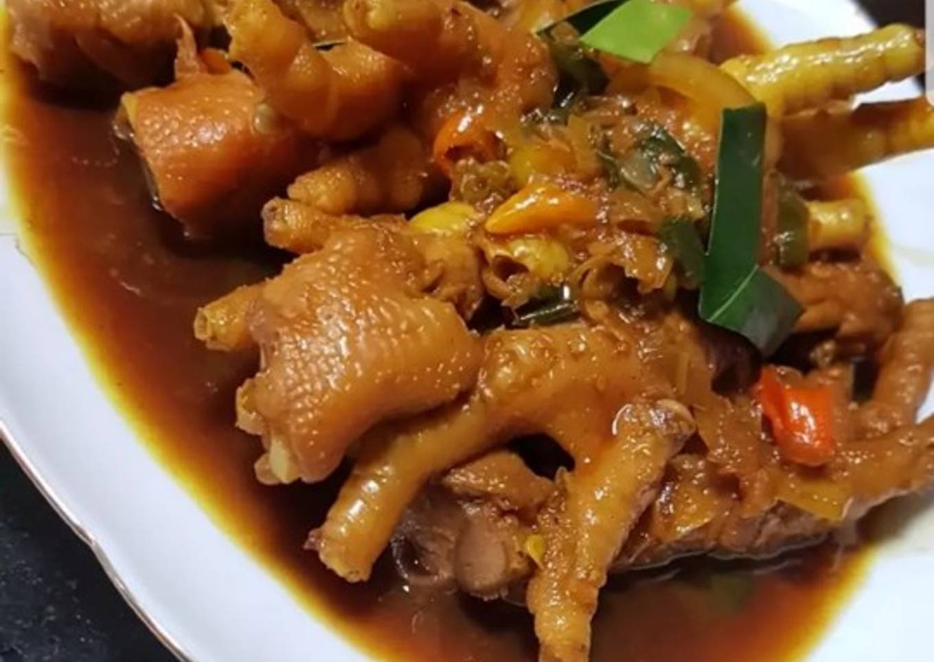 - Kemudian masukkan ceker yang sudah d rebus empuk, tambahkan gula merah, dan kecap manis, tambahkan penguat rasa ayam kalau diperlukan, koreksi rasa, rebus sampai bumbu meresap dan air tinggal sedikit, siap di sajikan 😊