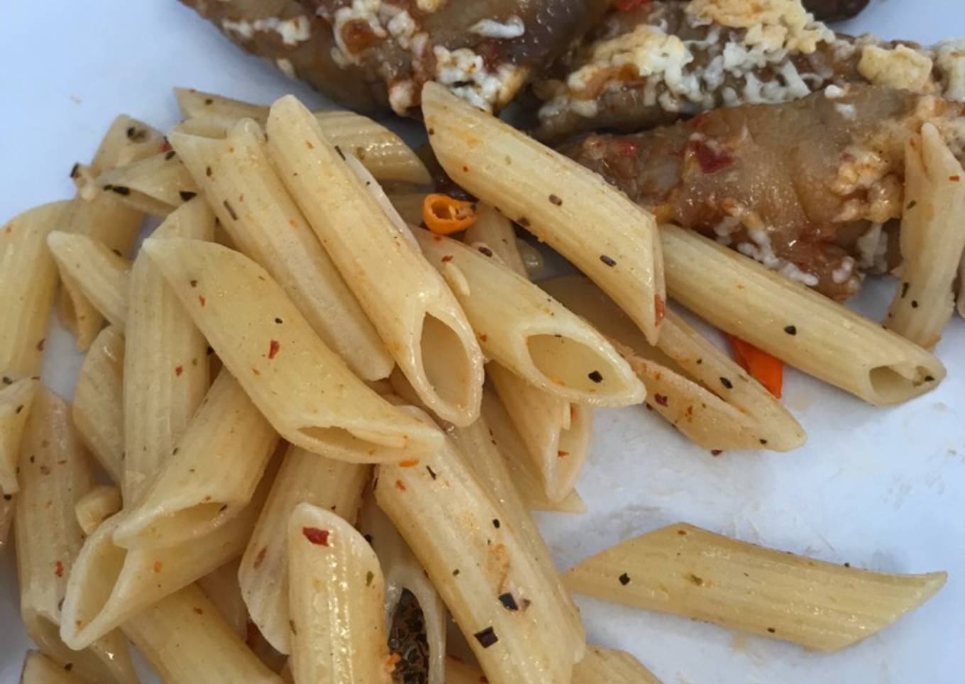 - Tumis bawang putih dan cabe dengan minyak canola (Minyak agak banyak), jika sudah harum masukkan pasta, tambahkan kaldu jamur, bon cabe, test rasa. Jika sudah pas tambahkan parsley secukupnya, aduk hingga rata. Sisihkan.