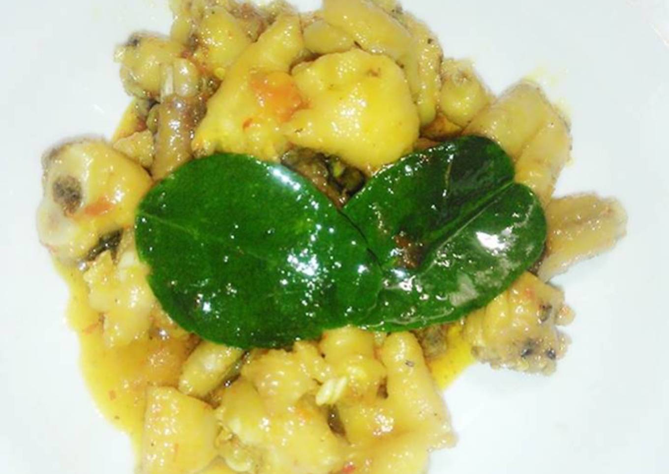 - Aduk lah hingga merata dan berikan penyedap rasa sperti rayco. setelah itu masukkan air asam sedekit ke dalam tumisn tersbut dan berikan kunyit 1/2 sendok teh,, merica dan gula pasir 1/2 St. Aduklah hingga merata ya guys. Jangan Lupa tambahkan daun jeruknya jika ada.