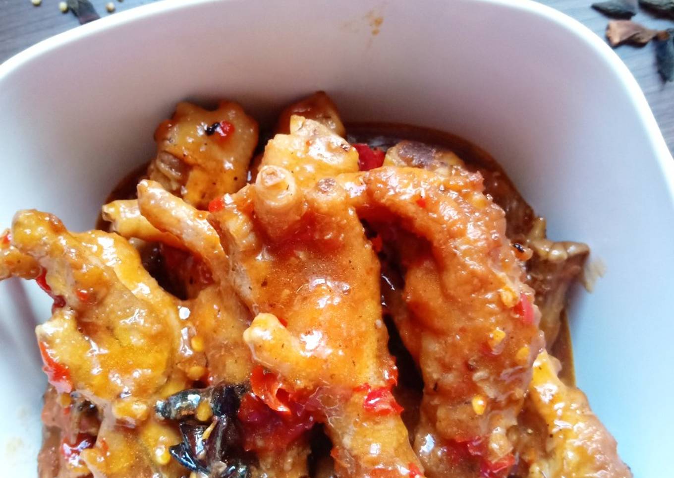 - Rebus ceker ayam dengan Air mendidih, garam, merica, bawang putih sampai ceker empuk