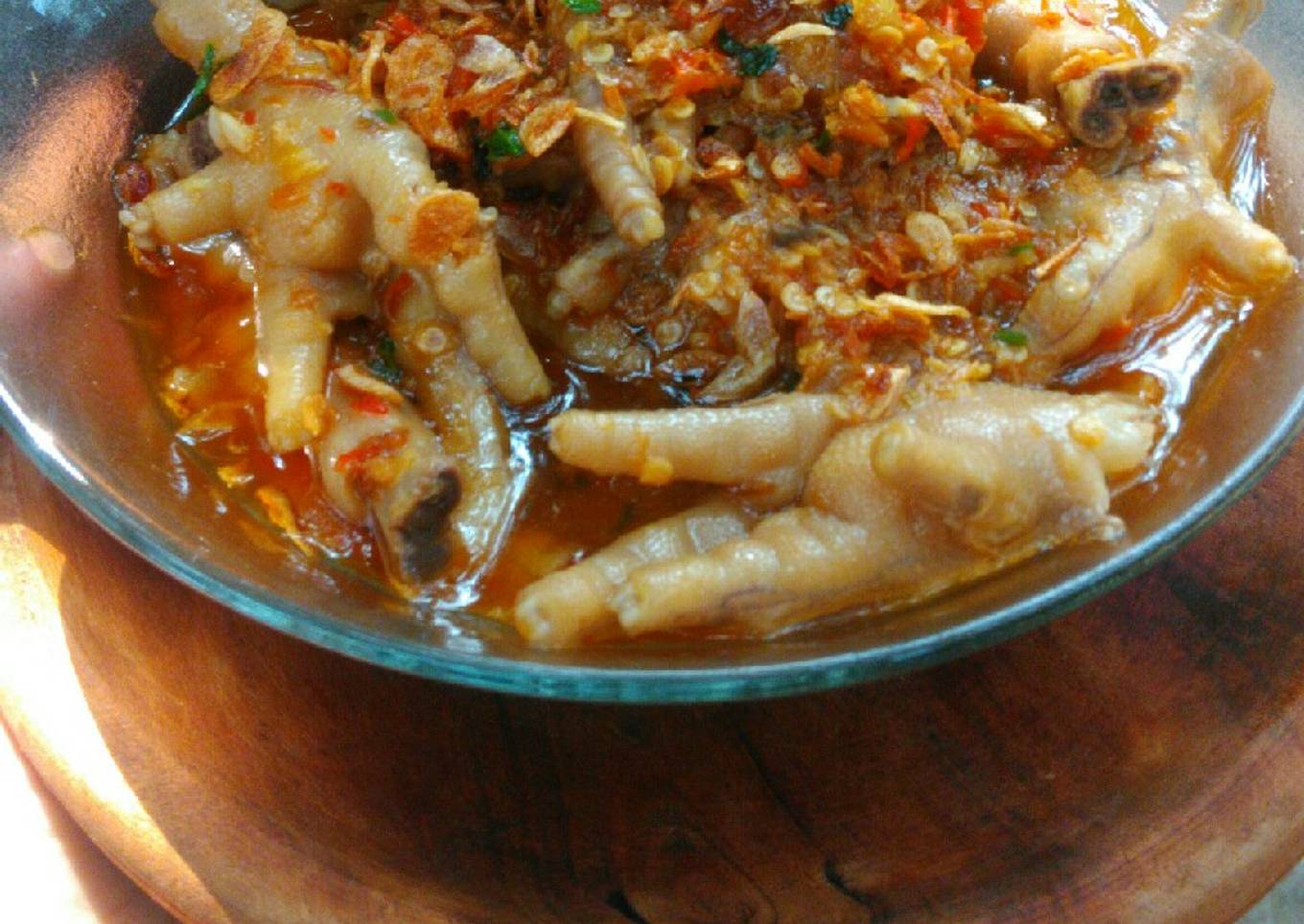 Banyak hal yang sedikit banyak berpengaruh terhadap kualitas rasa dari Ceker mercon jontor, mulai dari jenis bahan, lalu pemilihan bahan segar, sampai cara mengolah dan menyajikannya. Tidak usah pusing jika mau menyiapkan Ceker mercon jontor enak di mana pun anda berada, karena asal sudah tahu triknya maka hidangan ini dapat jadi suguhan istimewa. Seterusnya adalah gambar mengenai Ceker mercon jontor yang bisa sobat jadikan inspirasi.