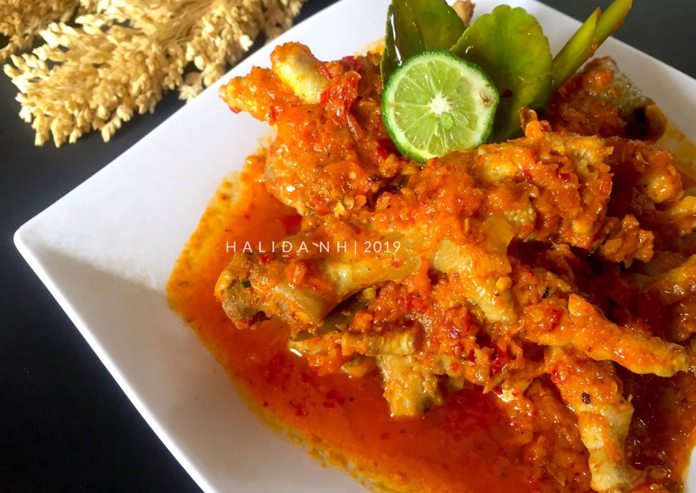 - Tambahkan sedikit air. Beri gula, garam dan bumbu penyedap. Aduk hingga mendidih. Masukan ceker ayam, aduk rata. Tutup wajan tunggu sampai airnya sedikit menyusut. Koreksi rasa. Sajikan.