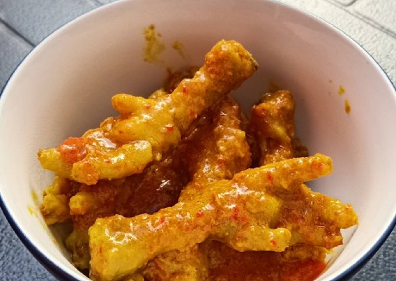 - Cuci bersih ceker, rebus 10 menit. buang airnya tiriskan.
