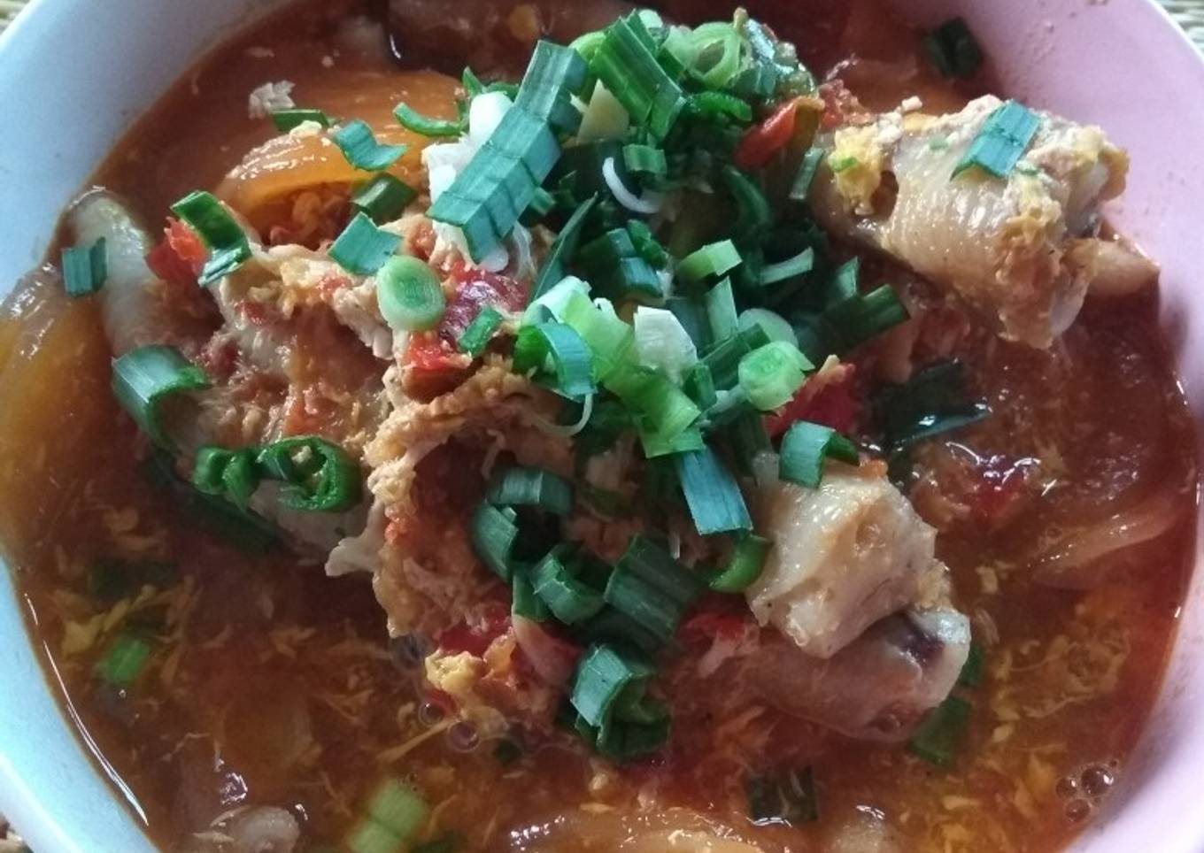 - Setelah mendidih masukkan terus kocok lepas... Tambahkan gula garam dan kaldu ayam nya.. terakhir masukkan ceker dan kerupuk.. sajikan di mangkok.. kemudian taburkan daun prei yang sudah diiris