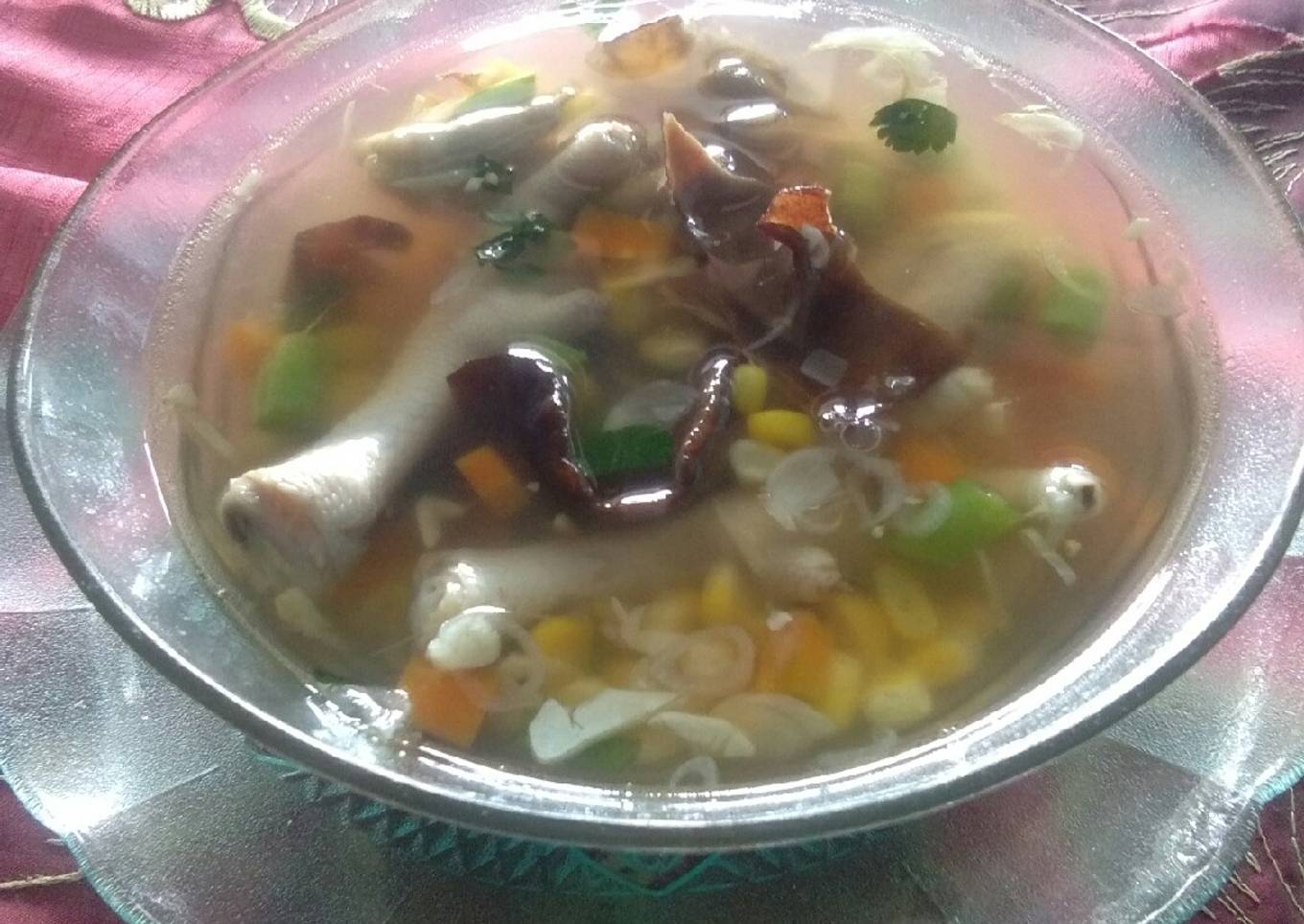 Cara membuat Sup ceker ayam pelangi