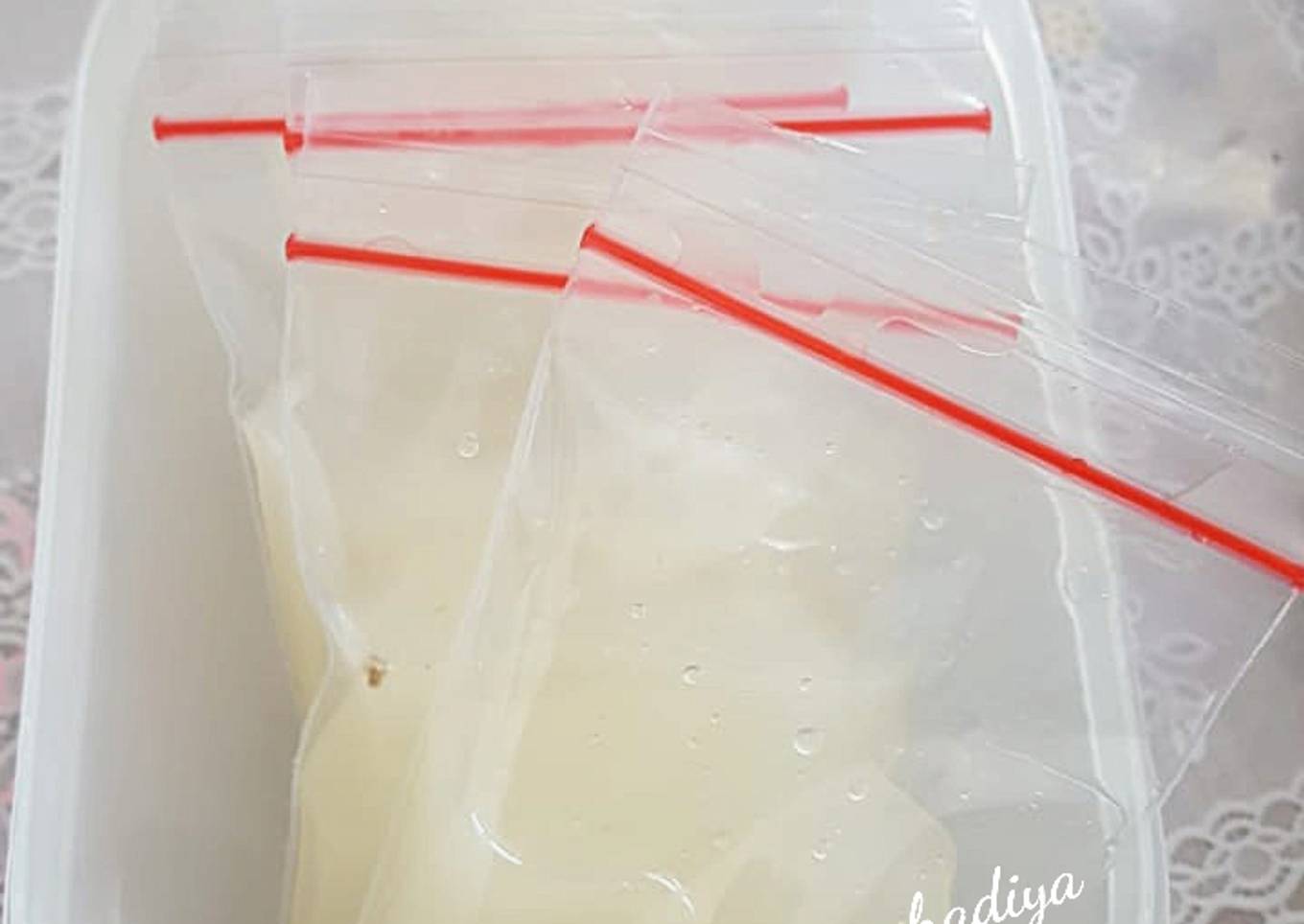 - Diamkan sampe dingin, masukan plasti/box kecil untuk dibekukan