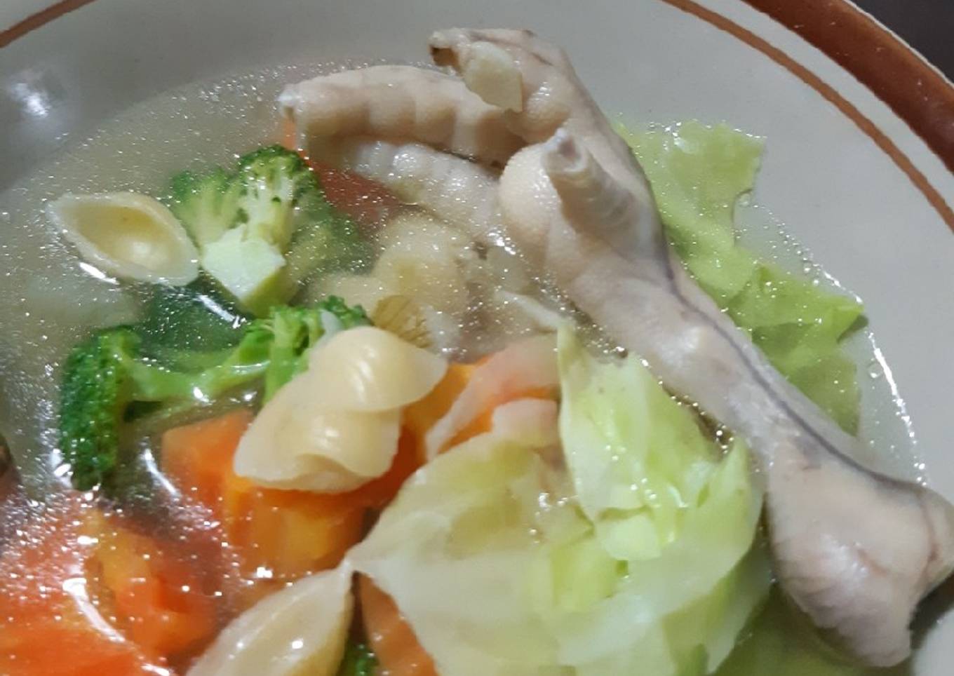 Ada beberapa hal yang sedikit banyak mempengaruhi kualitas rasa dari Sop sayur cakar, pertama dari jenis bahan, lalu pemilihan bahan segar, sampai cara mengolah dan menyajikannya. Tak perlu pusing jika hendak menyiapkan Sop sayur cakar yang enak di rumah, karena asal sudah tahu triknya maka hidangan ini bisa menjadi sajian istimewa. Berikutnya adalah gambar berkaitan dengan Sop sayur cakar yang dapat kalian jadikan contoh.