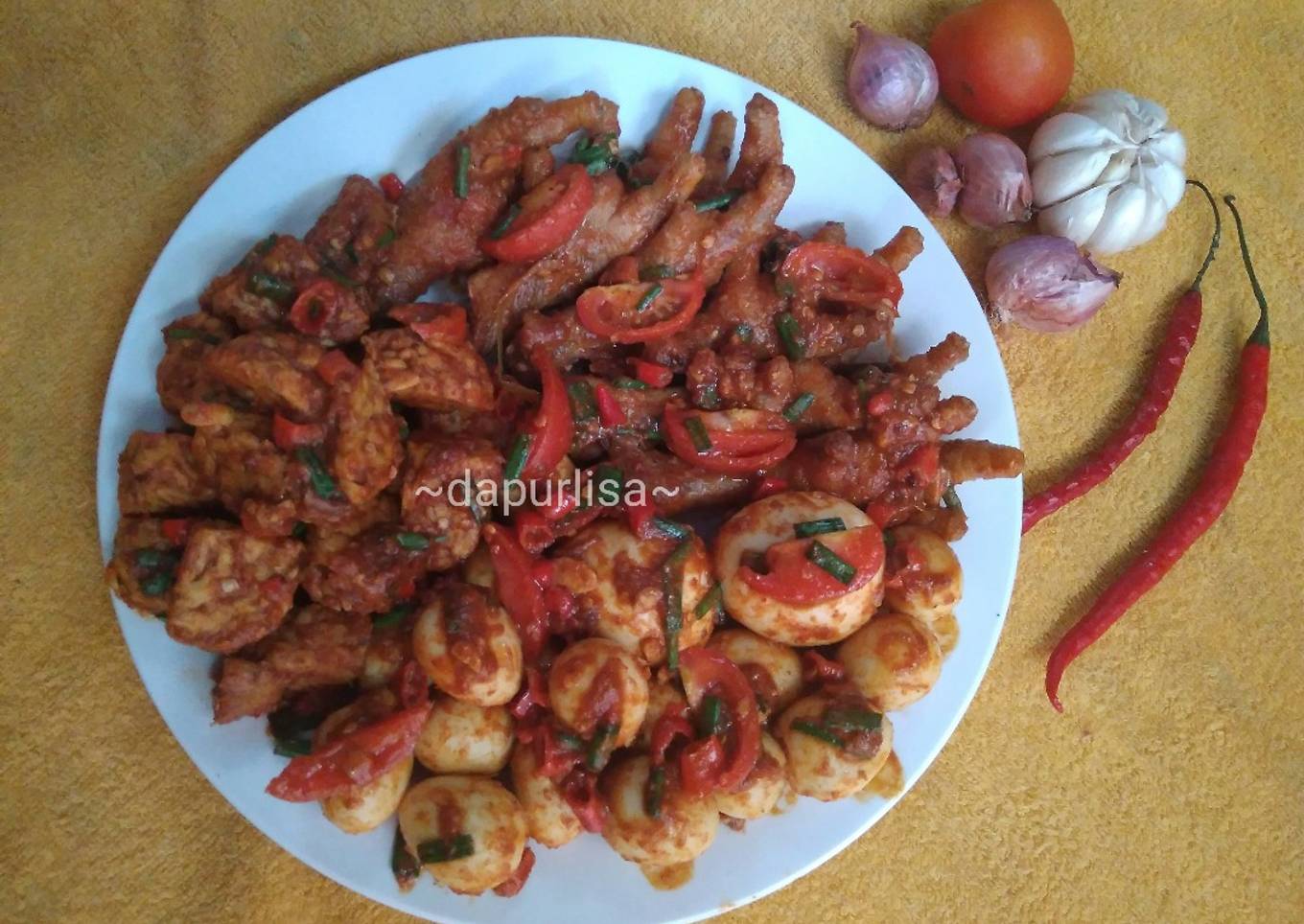 Bagaimana Membuat Ceker, telur, tempe bumbu kuning pedas parah, Lezat
