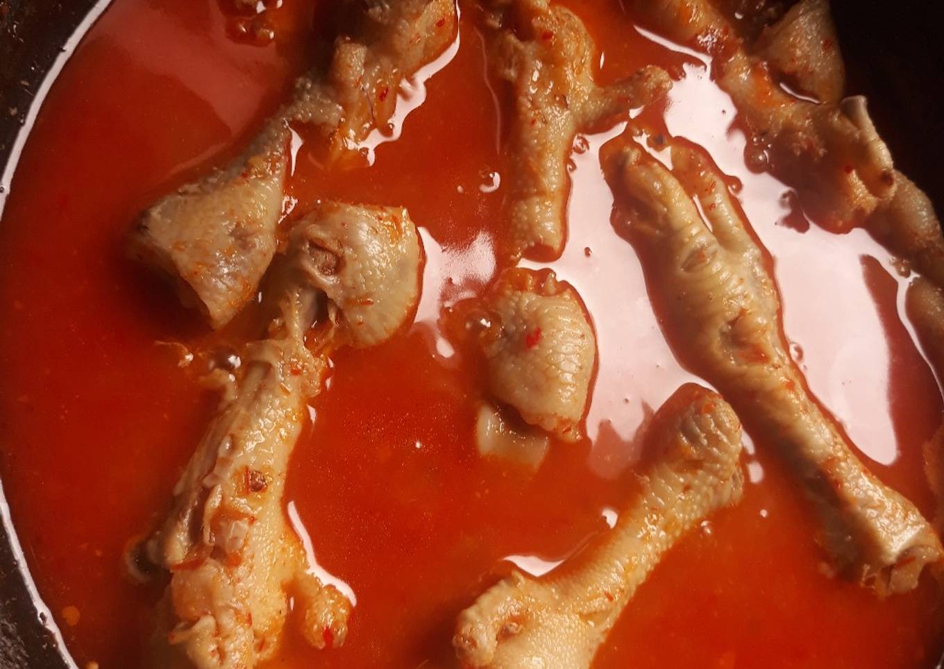 - Panaskan minyak, masukkan bumbu halus, tunggu mendidih. Beri rasa (garam, gula, penyedap, tambah kecap juga boleh) terakhir masukkan ceker, lalu tutup.