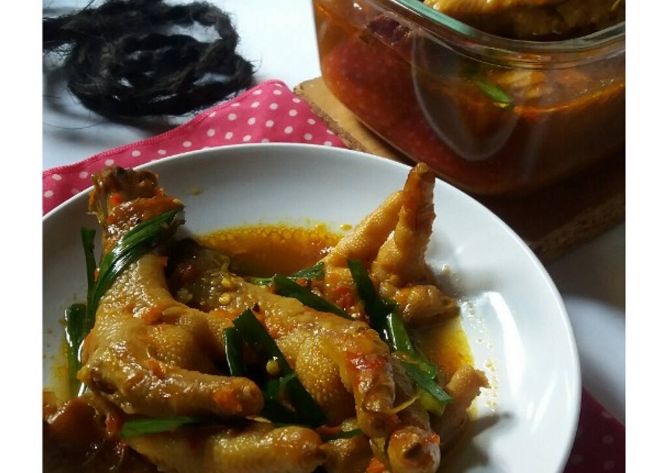 - Masukkan ceker, aduk-aduk sampai terbalut rata. Tambahkan air, gula merah dan kecap. Bumbui garam dan kaldu bubuk.