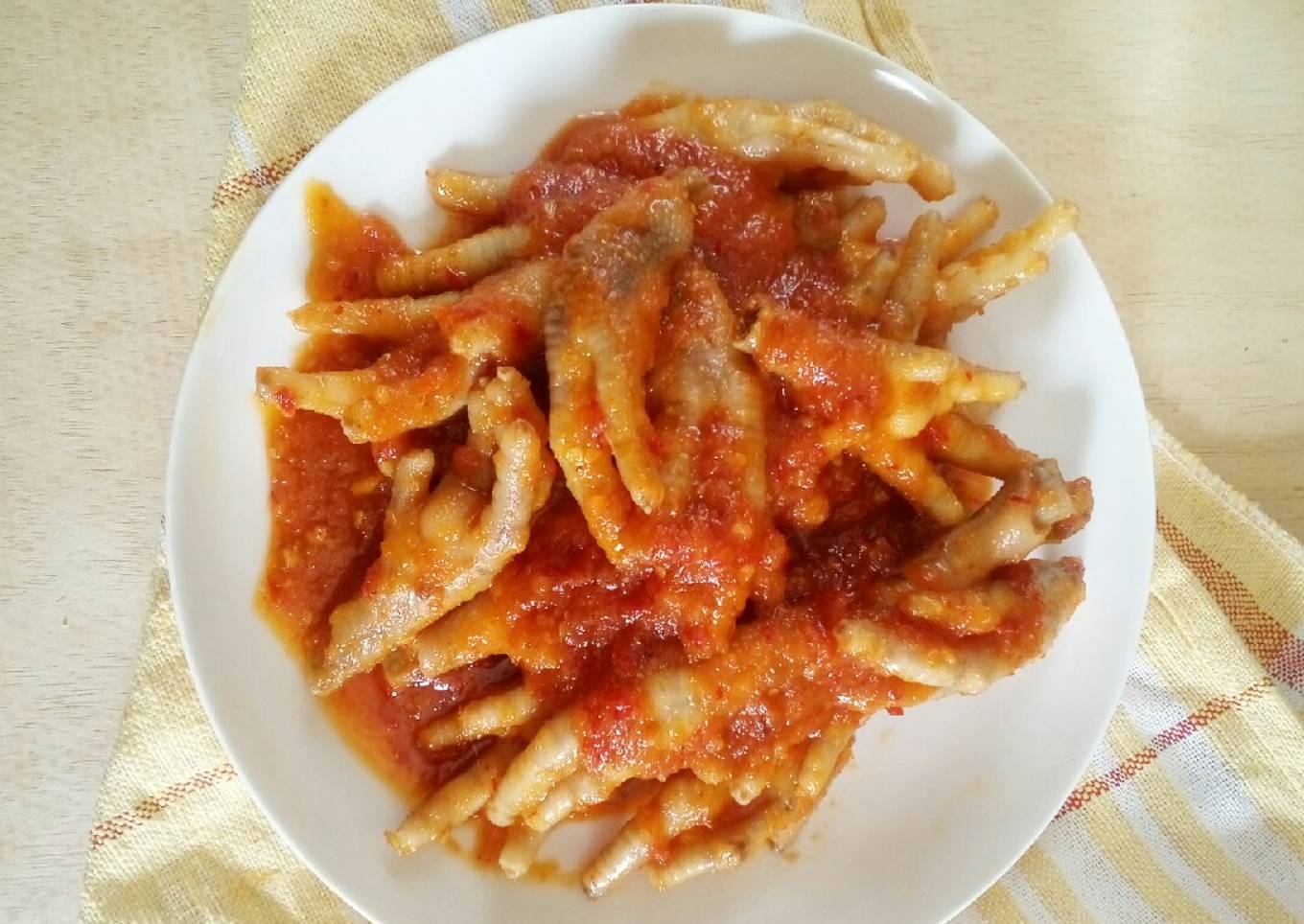- Kalau ceker sudah empuk angkat tiriskan,masak bumbu di minyak yang sudah di panaskan sampe airnyanya habis dan wangi,masukkan ceker dan bumbu tabur lainnya