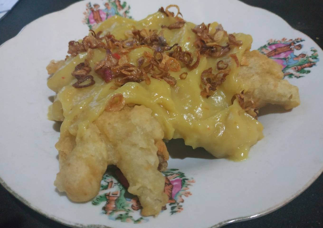 - Ceker Cripsy Saus Sate Padang Siap di nikmati. Taburi bawang goreng agar lebih nikmat.