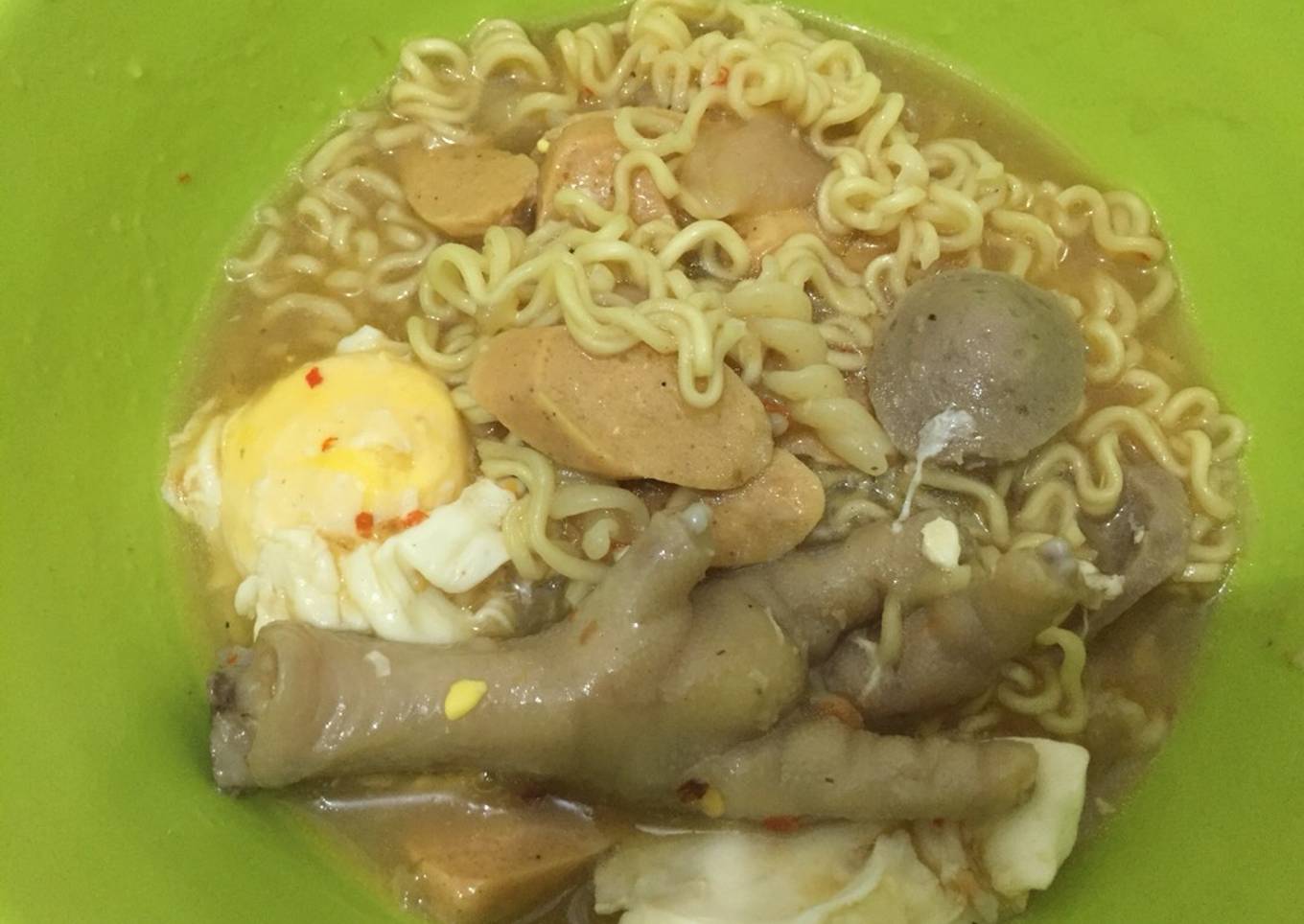 - Setelah itu tambahkan air rebusan (kadlu) ceker tadi beserta cekernya, lalu masukkan telur, aduk perlahan agar telur tidak pecah keseluruhan, dan terakhir masukkan mie instan dan aduk sampai matang, jangan lupa tes rasa ya 🤤