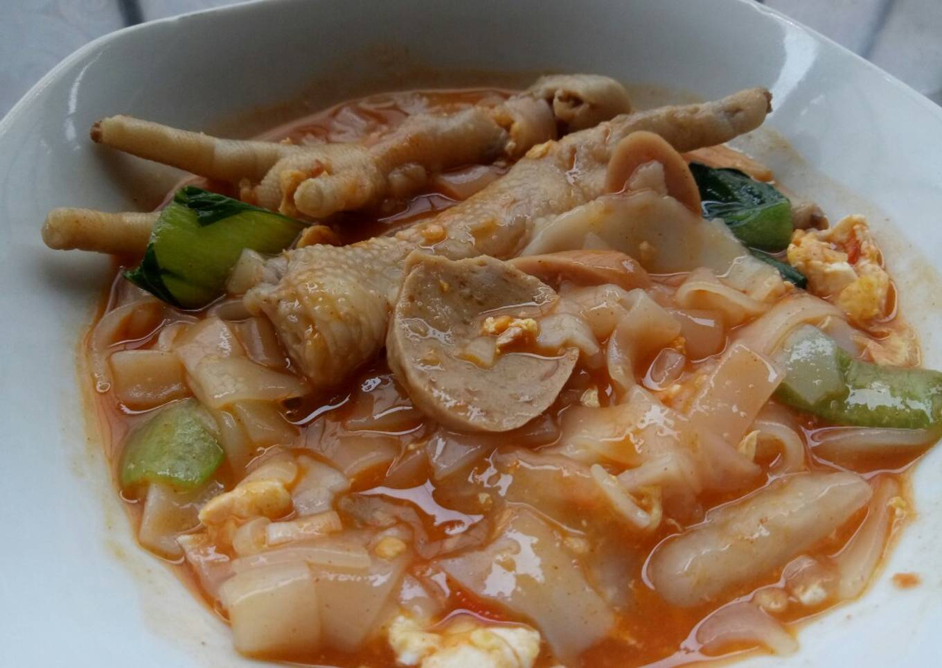 - Ulek bumbu halus lalu tumis hingga harum pinggirkan bumbu halus masukkan telur tunggu sebentar orak arik telur masukkan sosis bakso pokcoy tuang air kaldu masukkan ceker ayam kwetiau krupuk ikan.